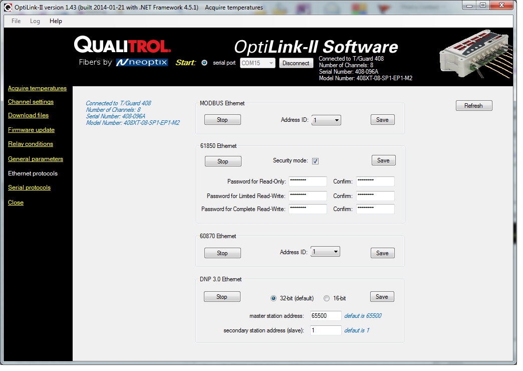 Le système T/Guard-405 est facile à interfacer avec un système de triage ou station existante via ses sorties analogiques 4-20 mA ou son interface de communication Modbus. Lorsqu'il est utilisé avec le logiciel optionnel Neoptix OptiLink ™ sur le port série, le T/Guard devient un instrument de surveillance indispensable.