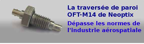 La traversée de paroi OFT-M14 de Neoptix a été spécialement conçue pour passer un capteur de température fibre optique Neoptix tout en conservant une cuve, un réservoir ou une chambre pressurisée sous de fortes pressions ou système sous vide poussé.