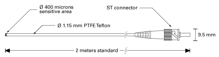 The outer protective jacket is made out of pure virgin PTFE Teflon™ and has a diameter of 1.15 millimeters. It has a standard length of 2 meters and features a ST connector. The T1 can be ordered with a MW/RF immune dielectric connector made out of Ultem material.