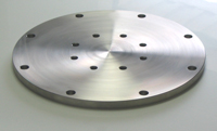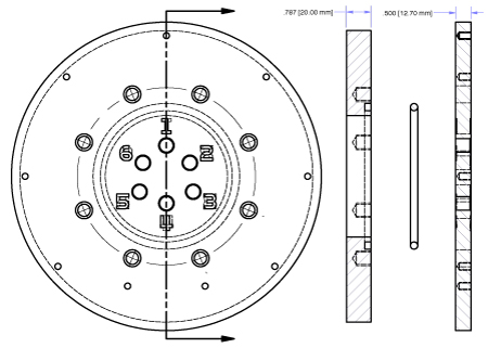 The tank wall plate accommodates from 1 to 24 optical feedthroughs and is supplied with plugs to close unused holes. It comes standard with 1/4 NPT ANSI threads.